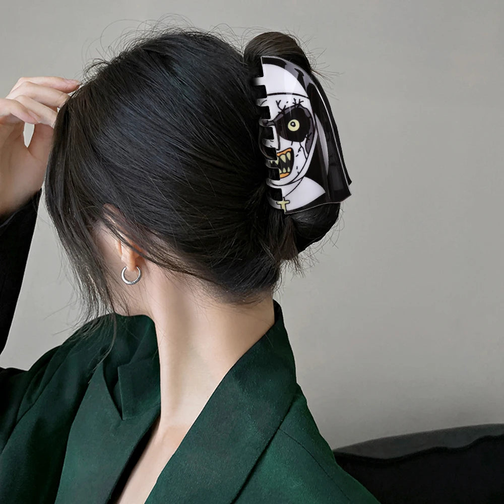 Unique Design: Stand out with our Hair Clip featuring cartoon horror movie prints, adding a fun and quirky touch to your hairstyle.
